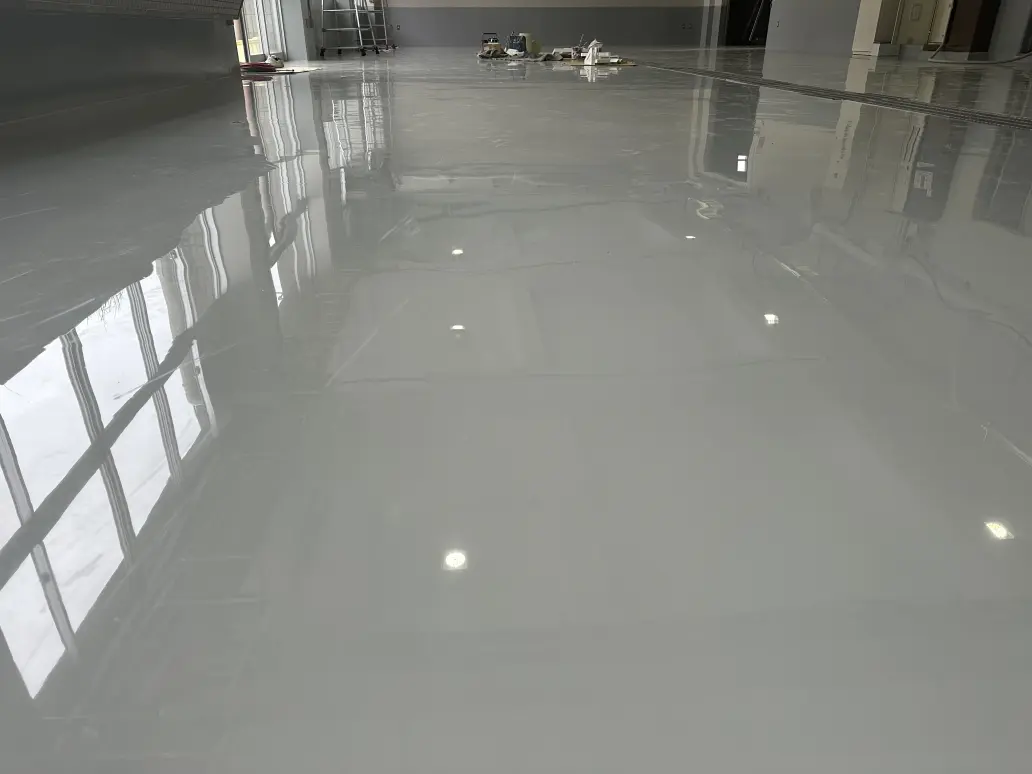 エポキシ樹脂の塗床と呼ばれるものでして、今回は「流し延べライニング工法」というちょっと難しい仕様だったのですが・・・