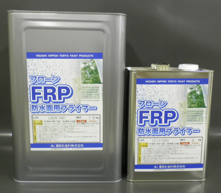 「フローンFRP防水面用プライマー」は、FRP防水層の密着性と耐久性を向上させる高性能プライマー。FRP防水の施工・補修に最適。